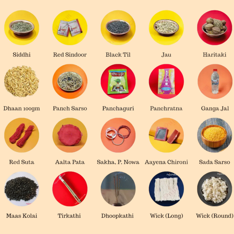 👉 नोट: कुछ बड़े सामान जैसे चौकी, हवनकुंड, दर्री, आदि घर से अलग से लाने होंगे। यह अंतर आपकी योजना को आसान बनाता है और पूजा को सुचारू रूप से सम्पन्न करता है।
